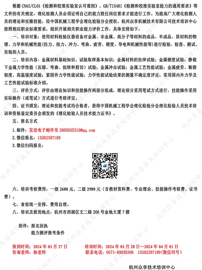 关于2024年03月开展力学性能检验人员职业能力评价工作的通知