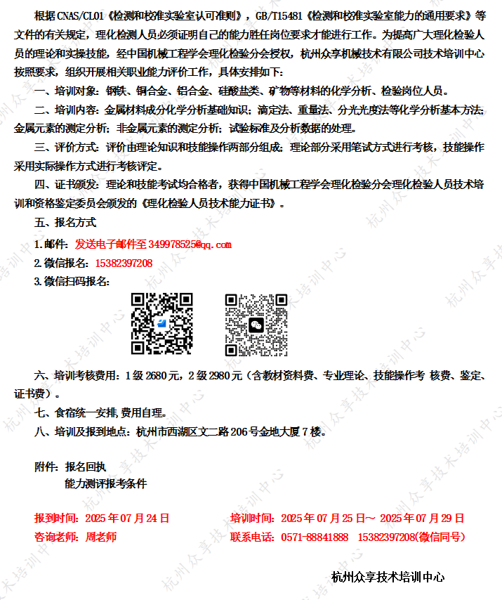 关于2025年07月开展化学分析(金属)人员能力评价工作的通知